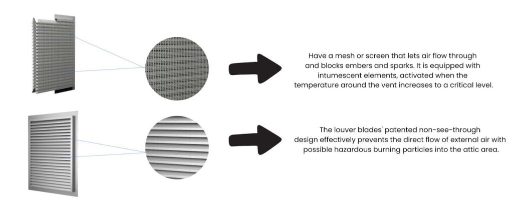 - Improved Fire Resistance: These vents can endure high temperatures and incoming flying embers/particles, which reduces the chance of buildings being penetrated by fire.